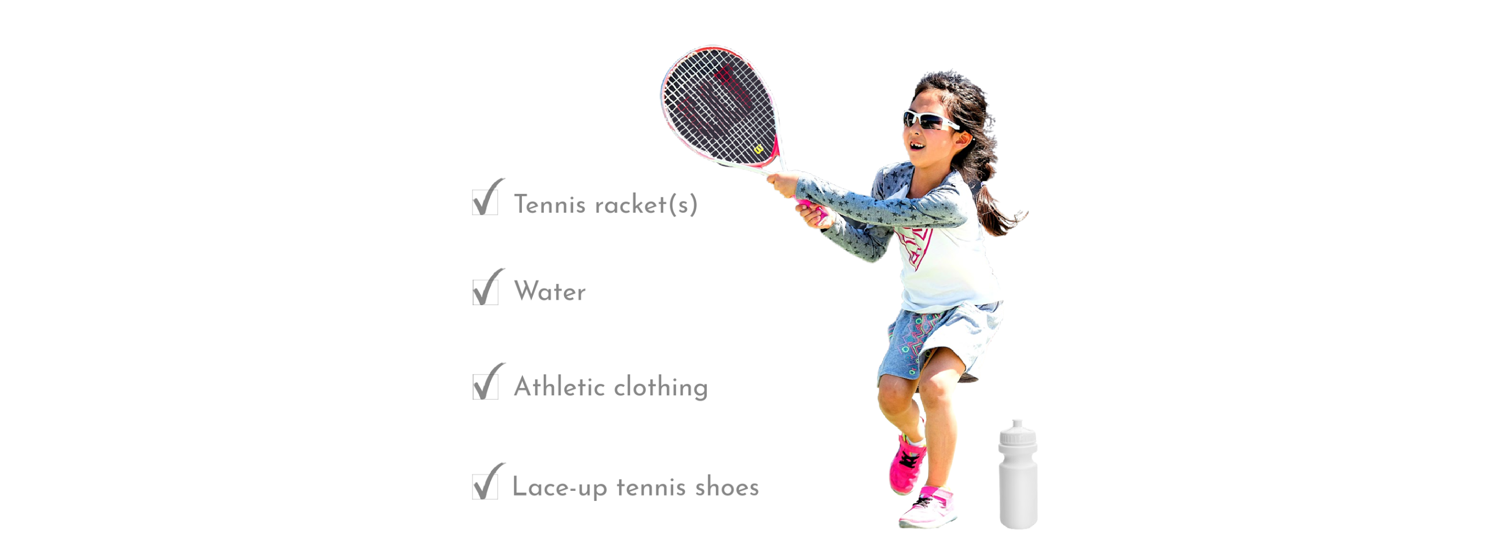 You should always have a tennis racket, water, athletic clothing and lace-up tennis shoes.