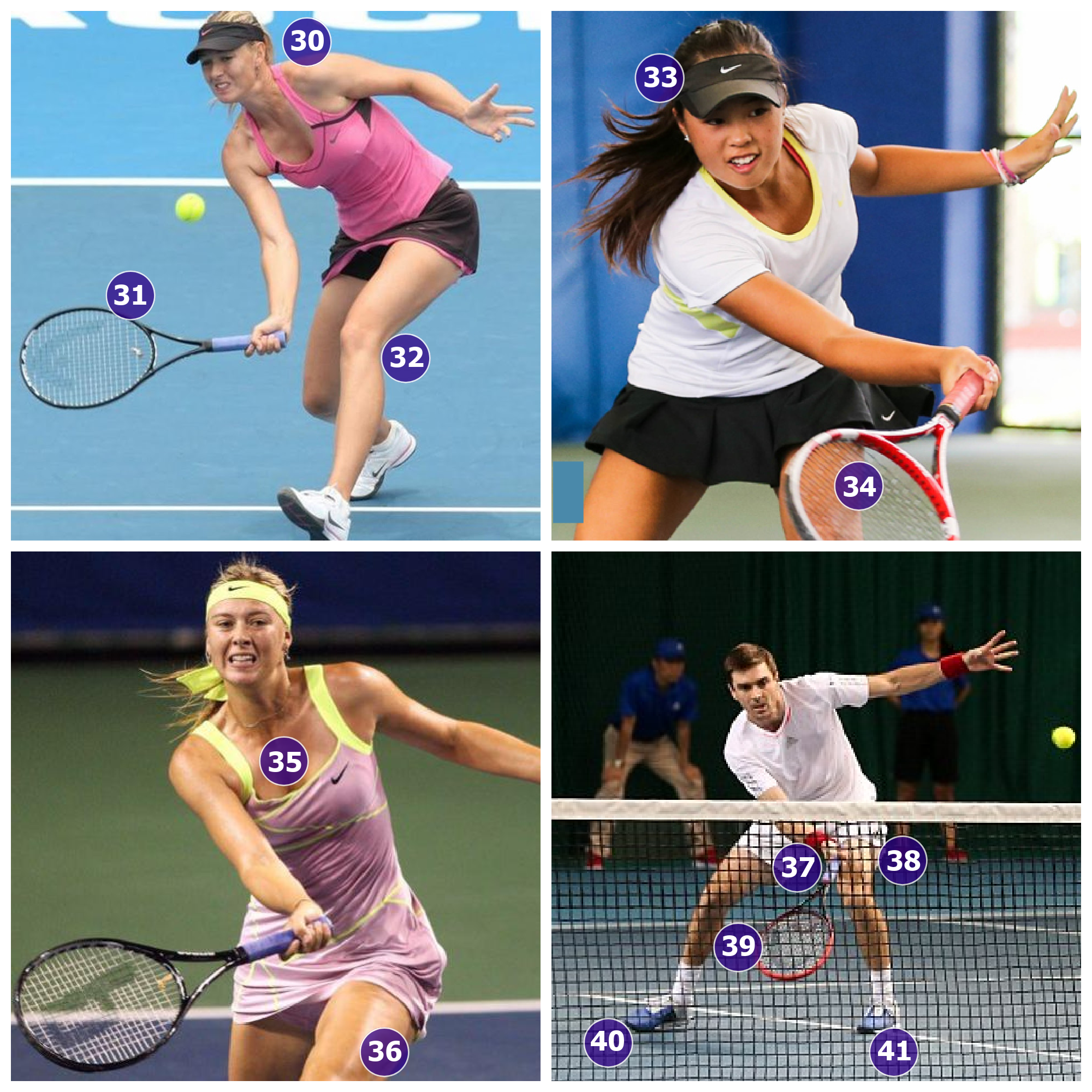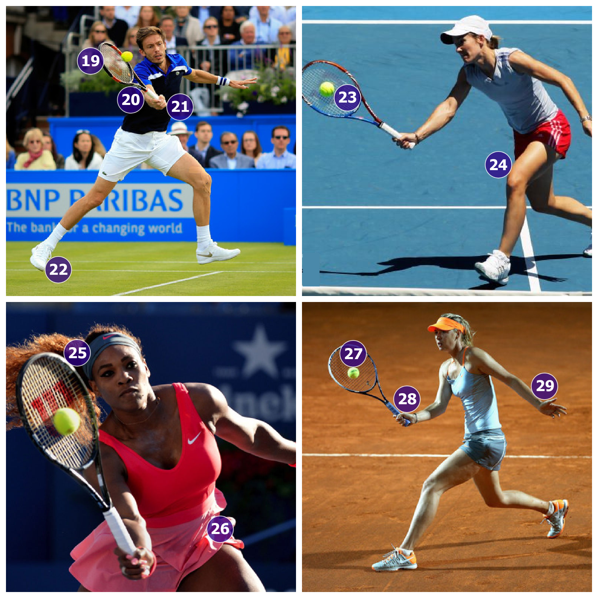 26. Hips stay low, keeping the body athletic and balanced. The height of the player during the stroke depends on the height of the ball.