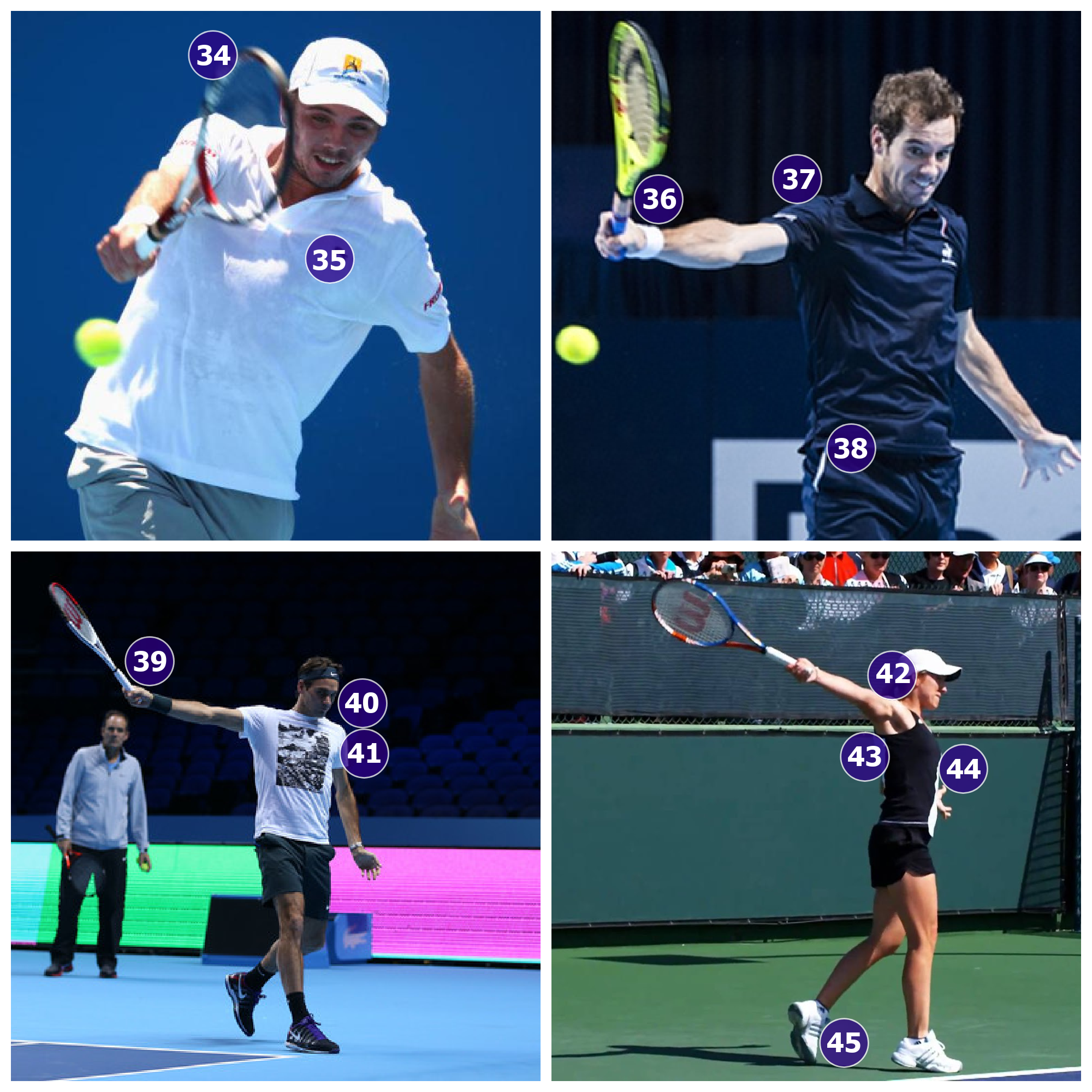 34. Racket head keeps rising and begins to swing to the other side of the body.